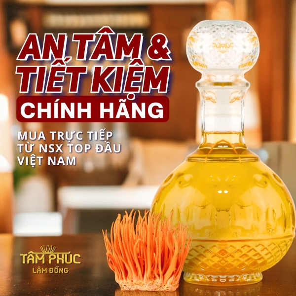 Tâm Phúc Lâm Đồng sử dụng Đông Trùng Hạ Thảo Tươi nguyên chất ngâm với Rượu Nếp đã được khử andehit trong thời gian 06 tháng.