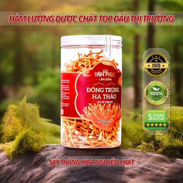 Được SẤY THĂNG HOA từ  Đông Trùng Hạ Thảo Tươi loại 1 . Giữ nguyên 100% dưỡng chất, bảo quản lâu lên đến 24 tháng.